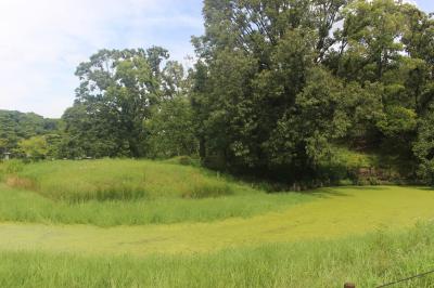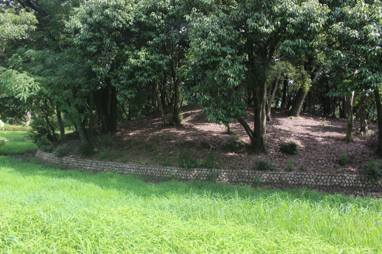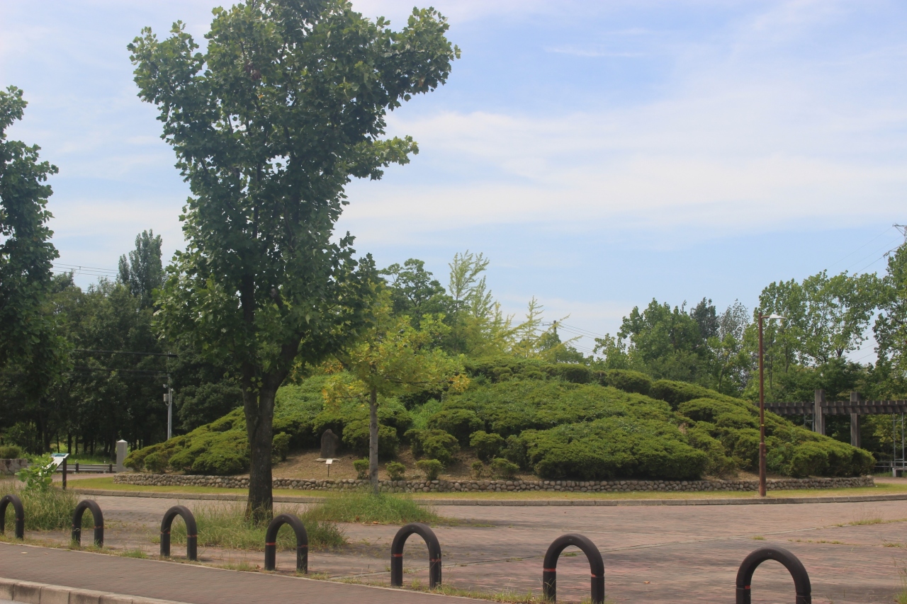 大仙公園内の古墳です。日陰にベンチがあり、一息するのにいいです