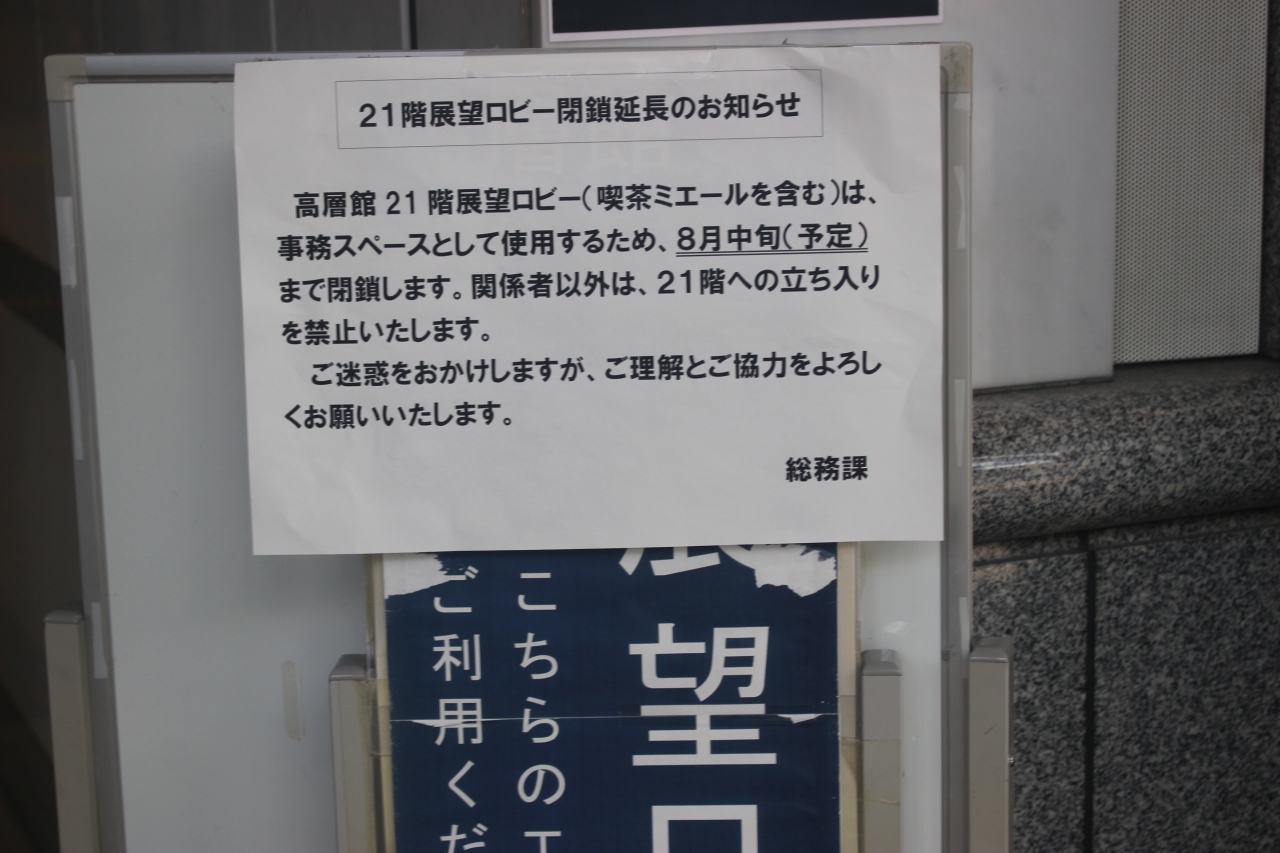 近くの堺市役所の展望台からがよく見えるようですが、コロナの関係か現在展望台は閉鎖されていてここからも見れませんでした。- 旅行時期