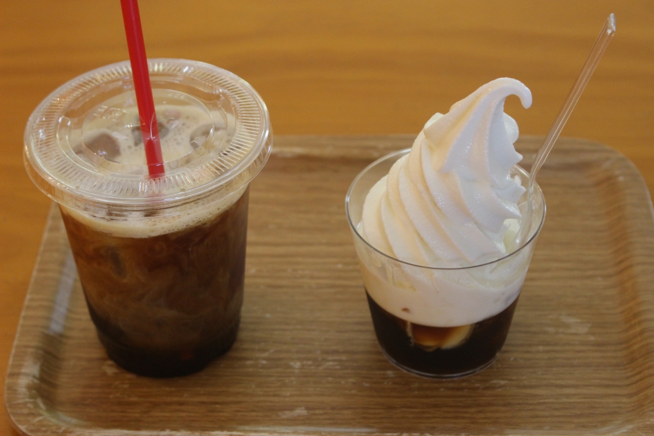 私はソフトが乗ってるコーヒーゼりーを食べましたが、味の濃いソフトクリームでした。- 旅行時期