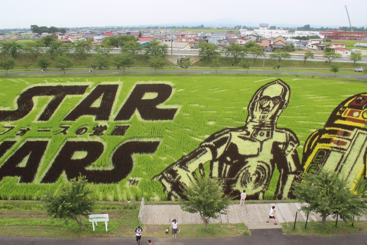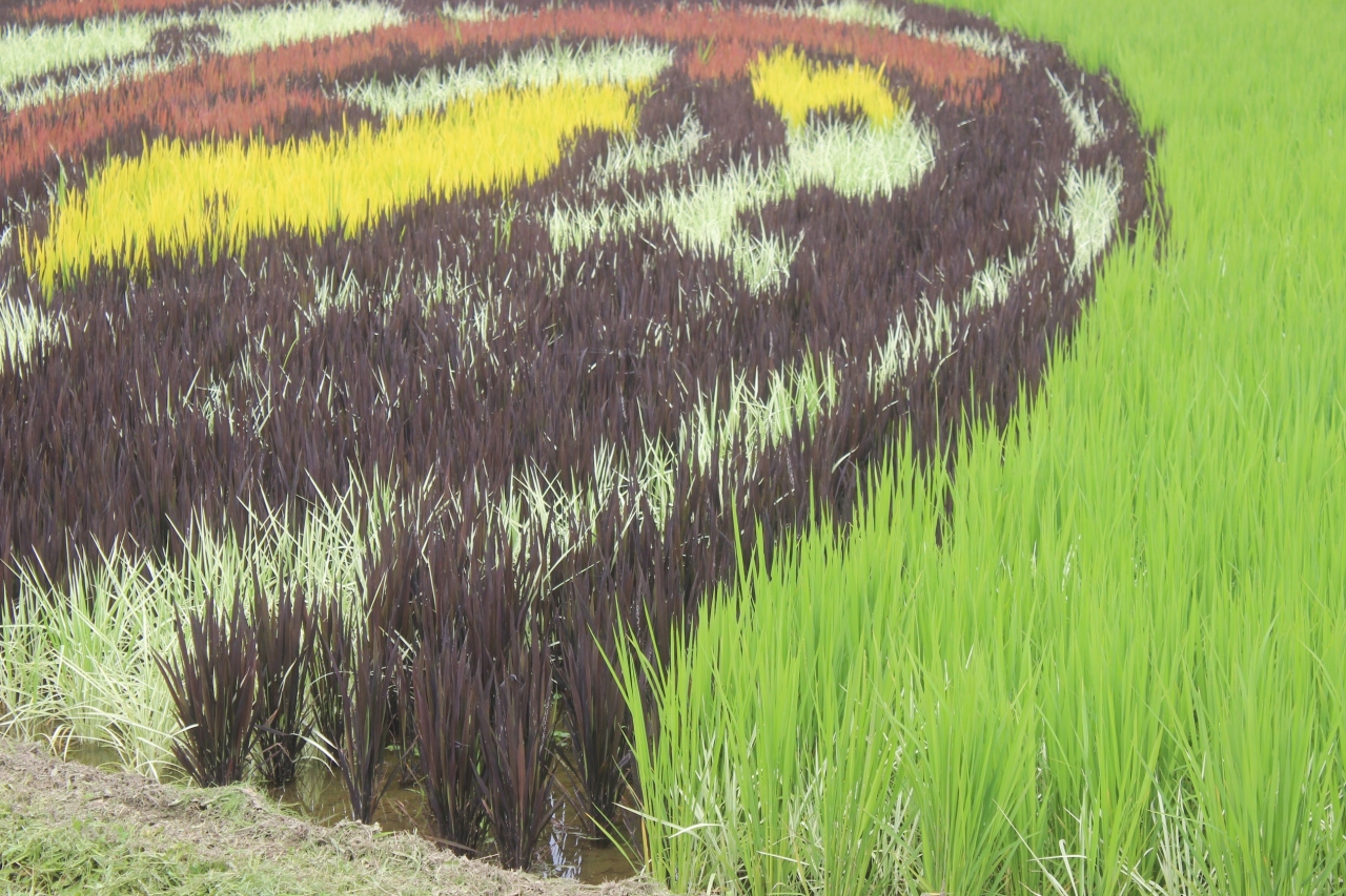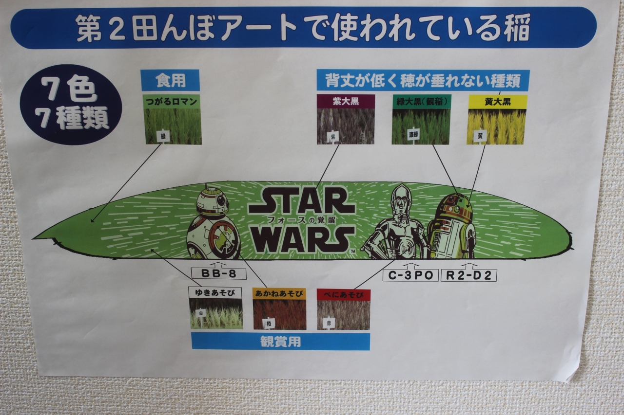 田舎館村の田んぼアートは「道の駅 いなかだけ」の近く、電車なら弘前駅から弘南鉄道に乗って約20分、田んぼアート駅で下車するのが便利です。