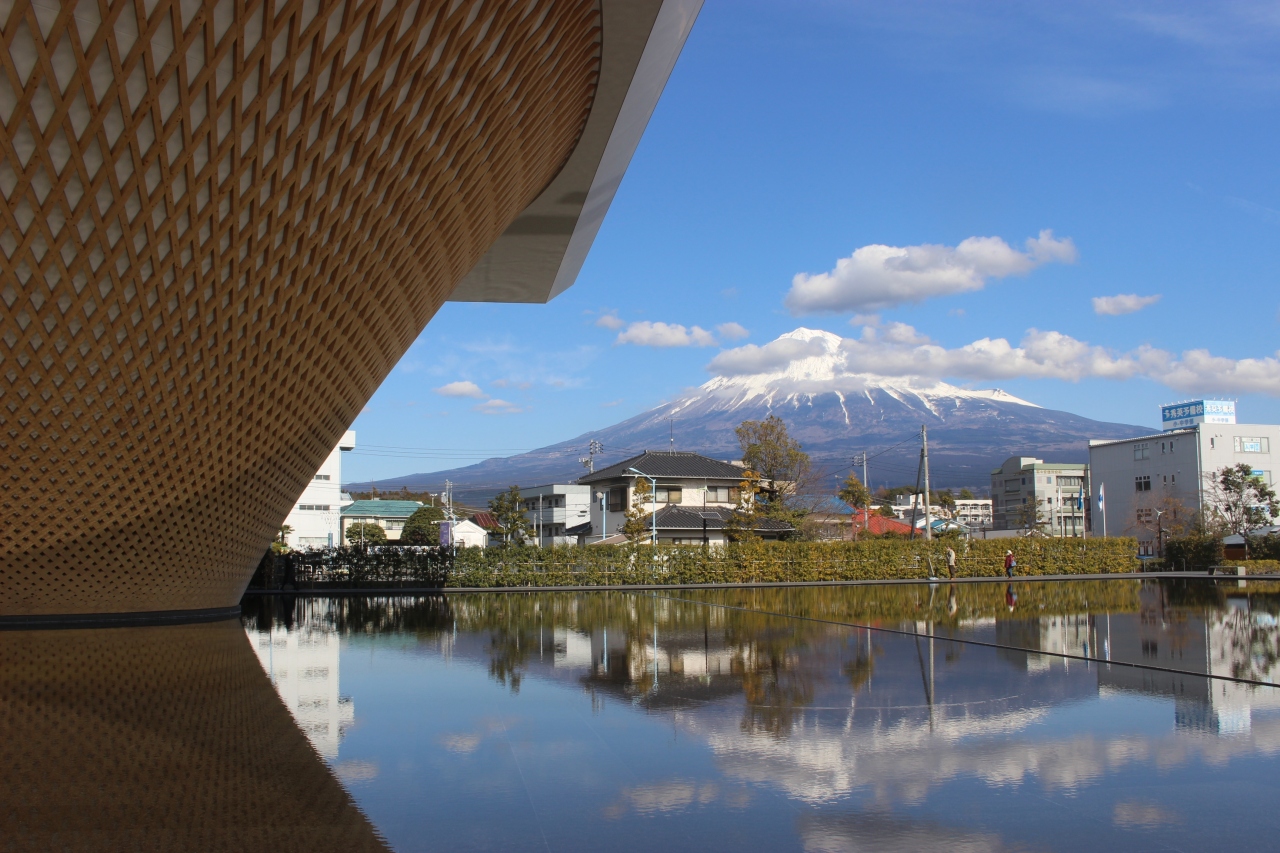 ココで一番印象的だったのは、建物の前の池に映る富士山。