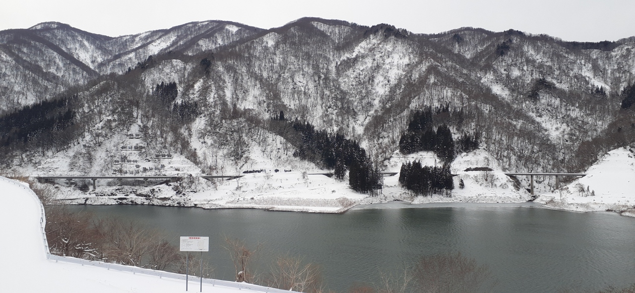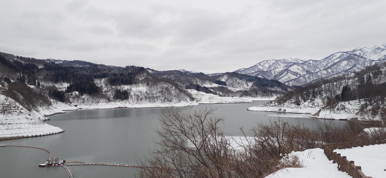 この付近には西川町の「月山湖」と鶴岡市の「あさひ月山湖」の2つの湖がありますが、「あさひ月山湖」の展望台です。