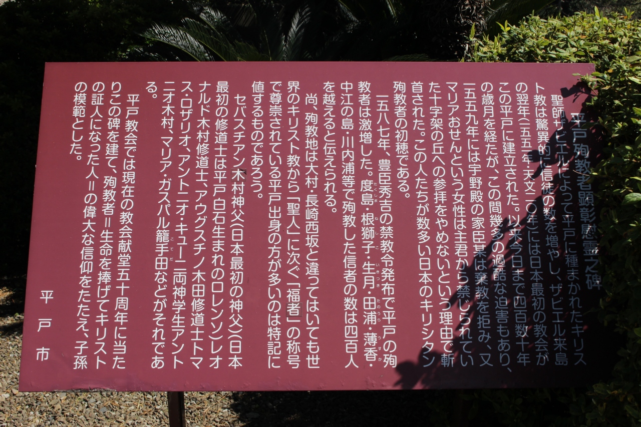 おなじ教会の中には、平戸島で殉教した多くの信者のための記念碑もありました。- 旅行時期