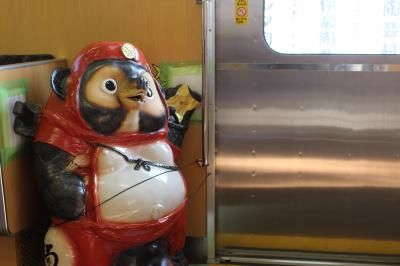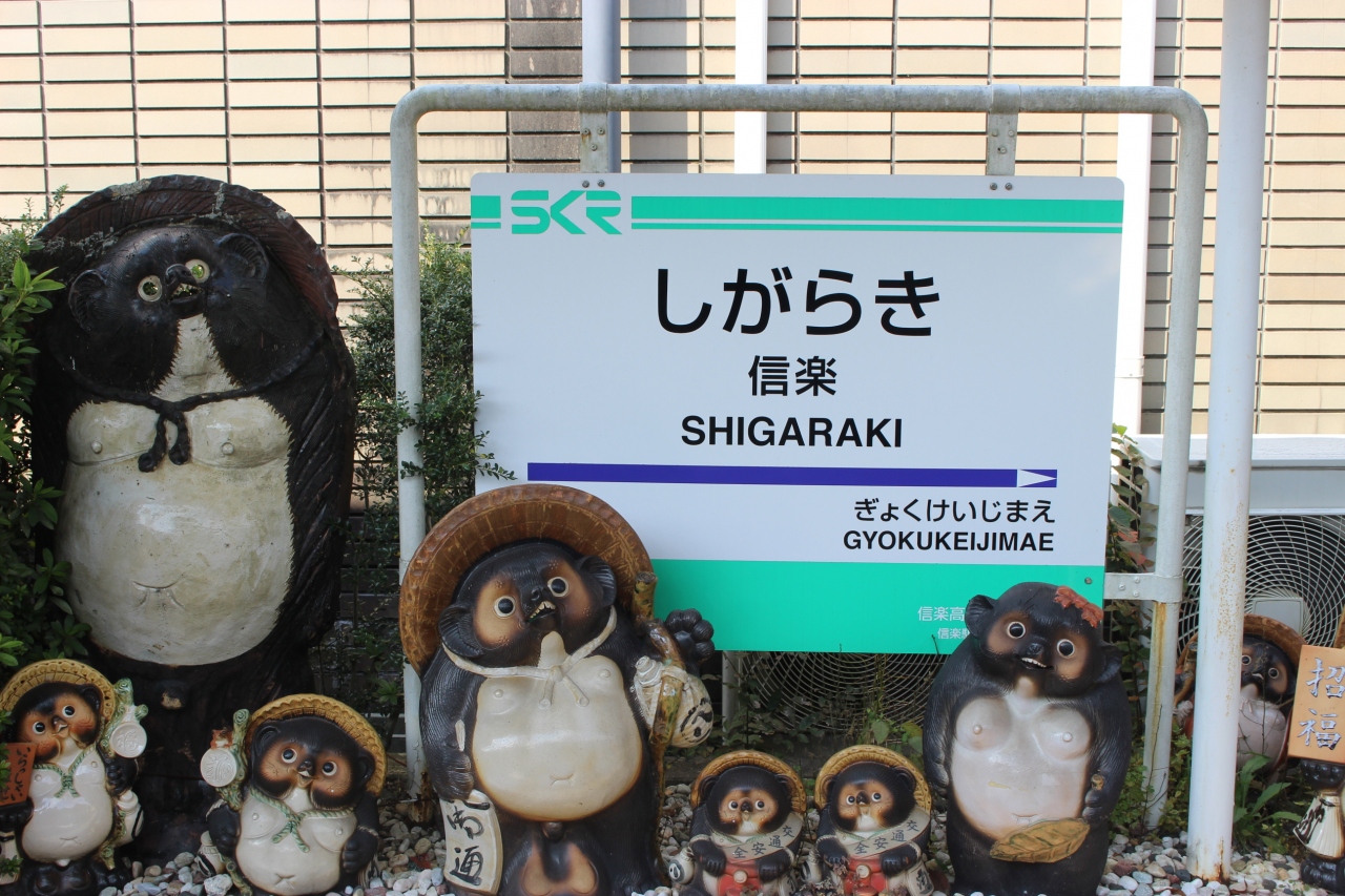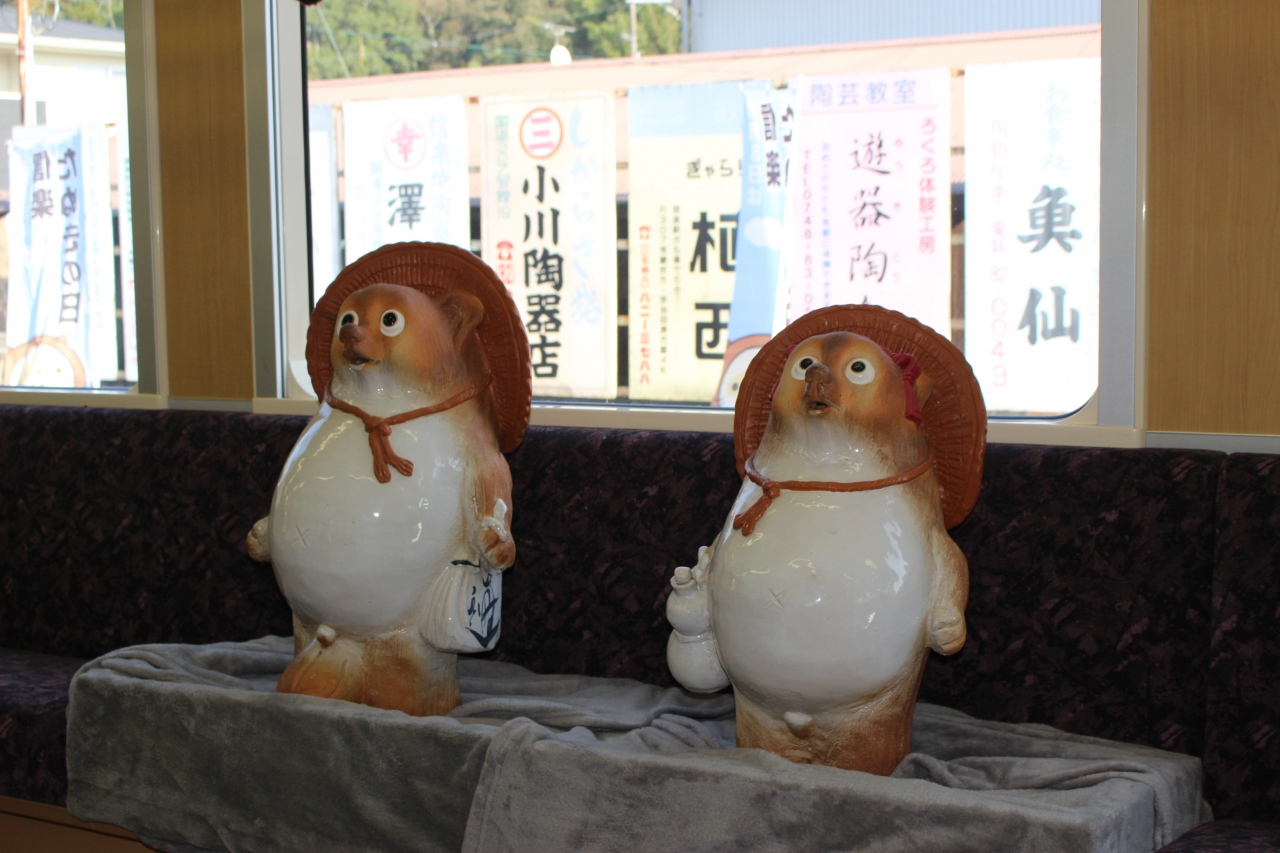 信楽と言えば「狸の置物」で有名なためか、電車の中にも狸の置物が置いてありました。