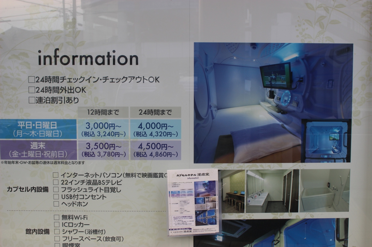 漫画喫茶経営のため、マンガ本を無料でカプセルへ持ち込むこともできます。- 旅行時期