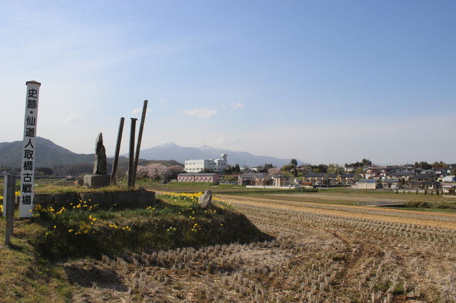 現在は国道沿いの水田となっていて、双方が激戦を繰り広げた人取橋は水田の中の小さな橋になっていました。- 旅行時期