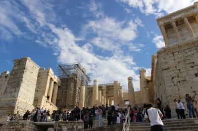 アクロポリスはそのいったいの丘を意味し、登っていくとパルテノン神殿があります。