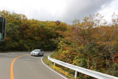 ヘアピンカーブの続く道路ですが、景色はよく、また紅葉も始まっていました。