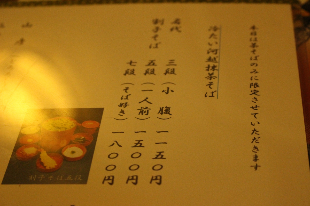 茶そばの割子そばを注文しましたが、割子3枚(ちょっとした軽食)で1200円弱と値段が高いのが敬遠されているのでしょう。