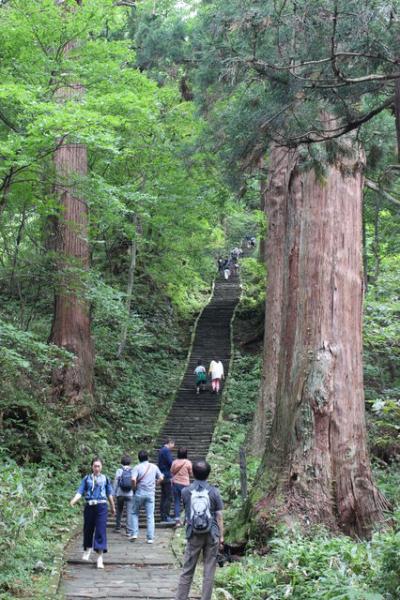 羽黒山の頂上まで行きますが、せっかくなので参道を歩きたかったので、随神門の前で降りて、1時間かけて頂上まで歩きました。