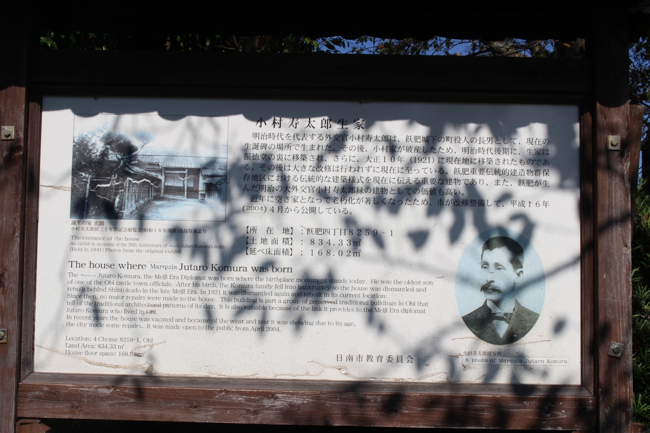 明治の名外交官・小村寿太郎の生家もこの武家屋敷地に移築復元されています。- 旅行時期