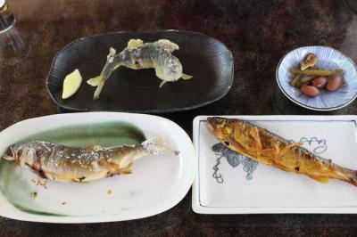 天然あゆと言っても、単に川で養殖しただけのものもあるそうですが(川でとれば「天然」ってことになるらしい)、この店は正真正銘、川をさかのぼってきたあゆを実際に釣ったものを出すとのことです。