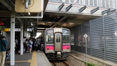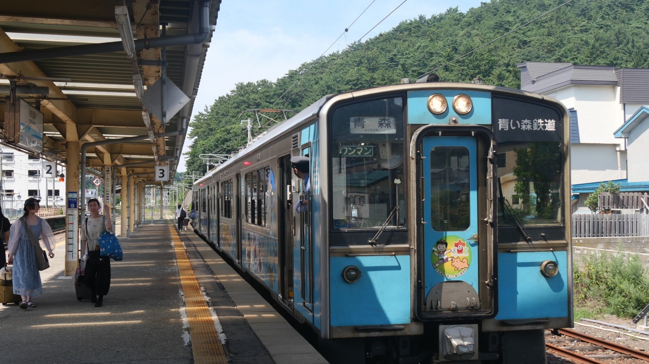 青森行の電車はねぶた祭に向かう利用者で大混雑。