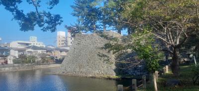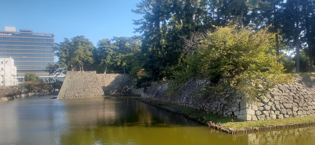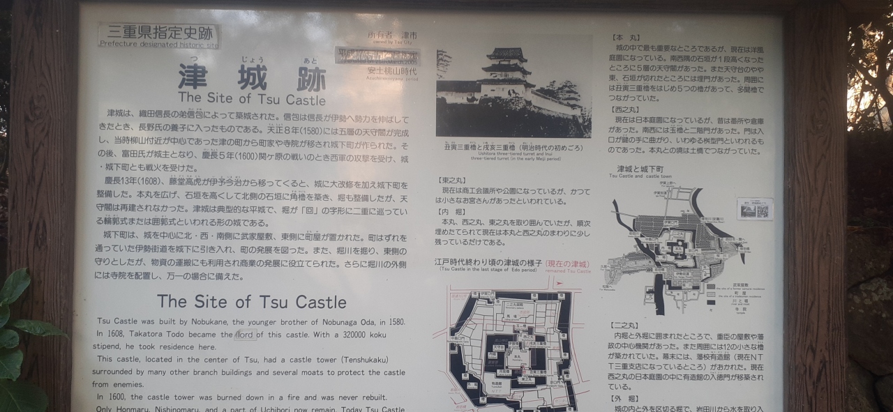 現在は石垣と水濠の一部が残っているだけです。津市役所の隣にあります