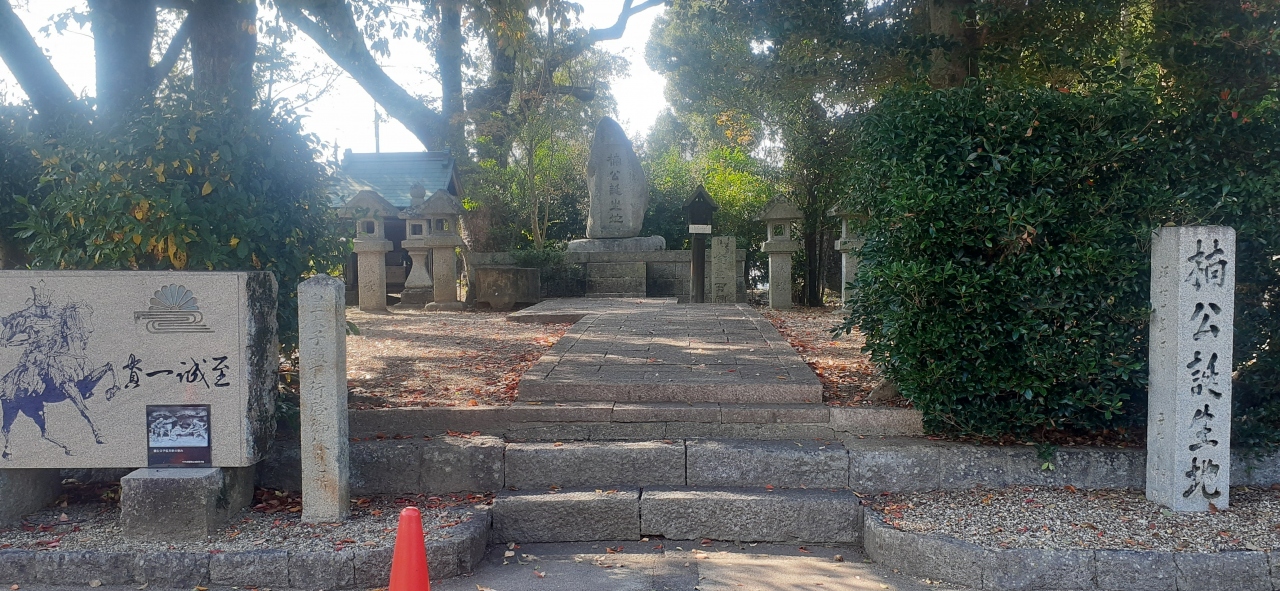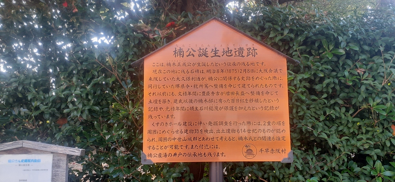 近くには楠木正成生誕地や郷土資料館、図書館などが集まっています。