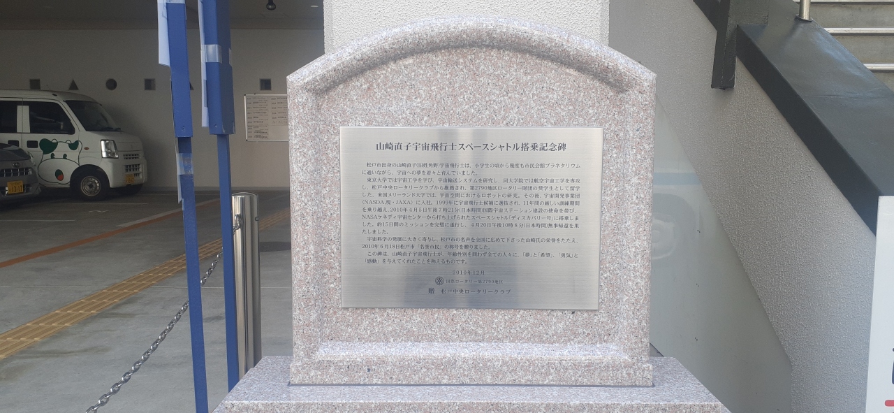 山崎直子宇宙飛行士スペースシャトルディスカバリー号搭乗記念碑 松戸
