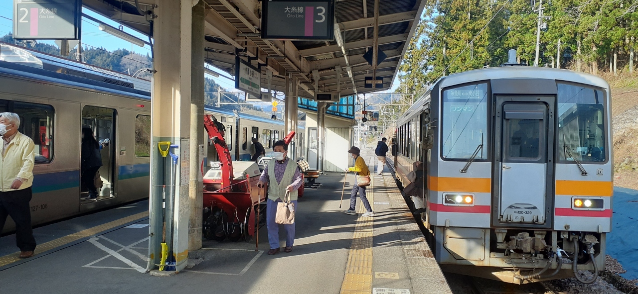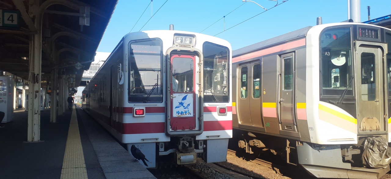 このひすいラインは妙高ラインに比べて利用者が少ないようで、電車ではなく、1両のデイーゼルカーでした。