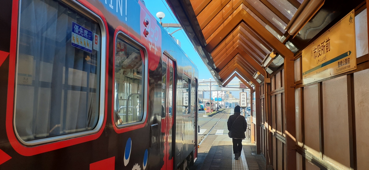 高田城の満開の桜を見るために、直江津から高田まで乗車しました。