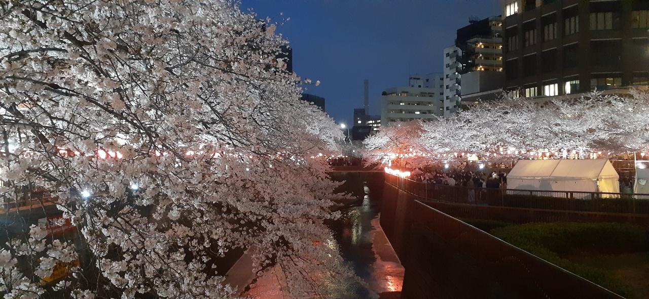 目黒川も夜桜を楽しんでいる人でものすごい人でした。- 旅行時期
