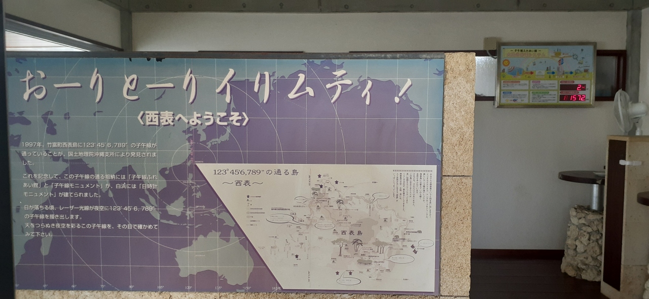 西表島小中学校の目の前、祖納集落に子午線モニュメントがあります。