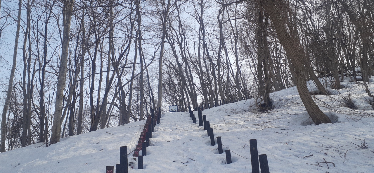 山の頂上には展望台があり、777段の階段で上れるそうですが、3月は雪が積もっていてとてもいけませんでした。- 旅行時期