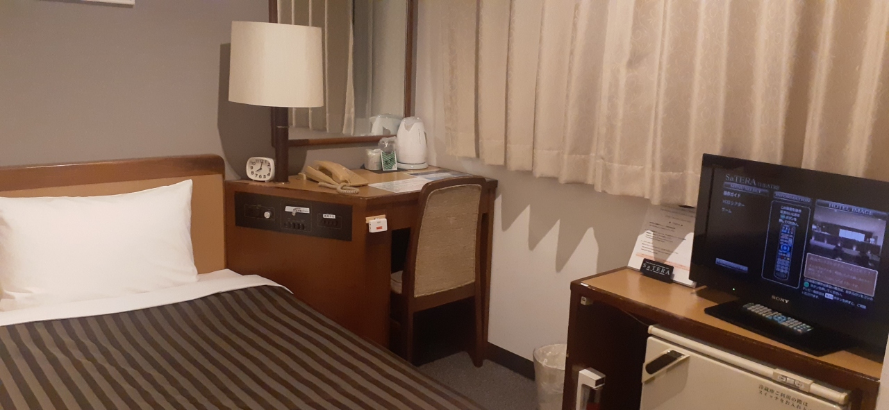 駅から近く。値段はリーズナブル。部屋は狭い。温泉の大浴場あり