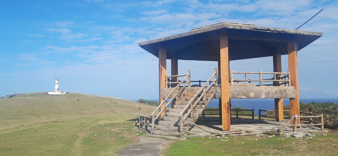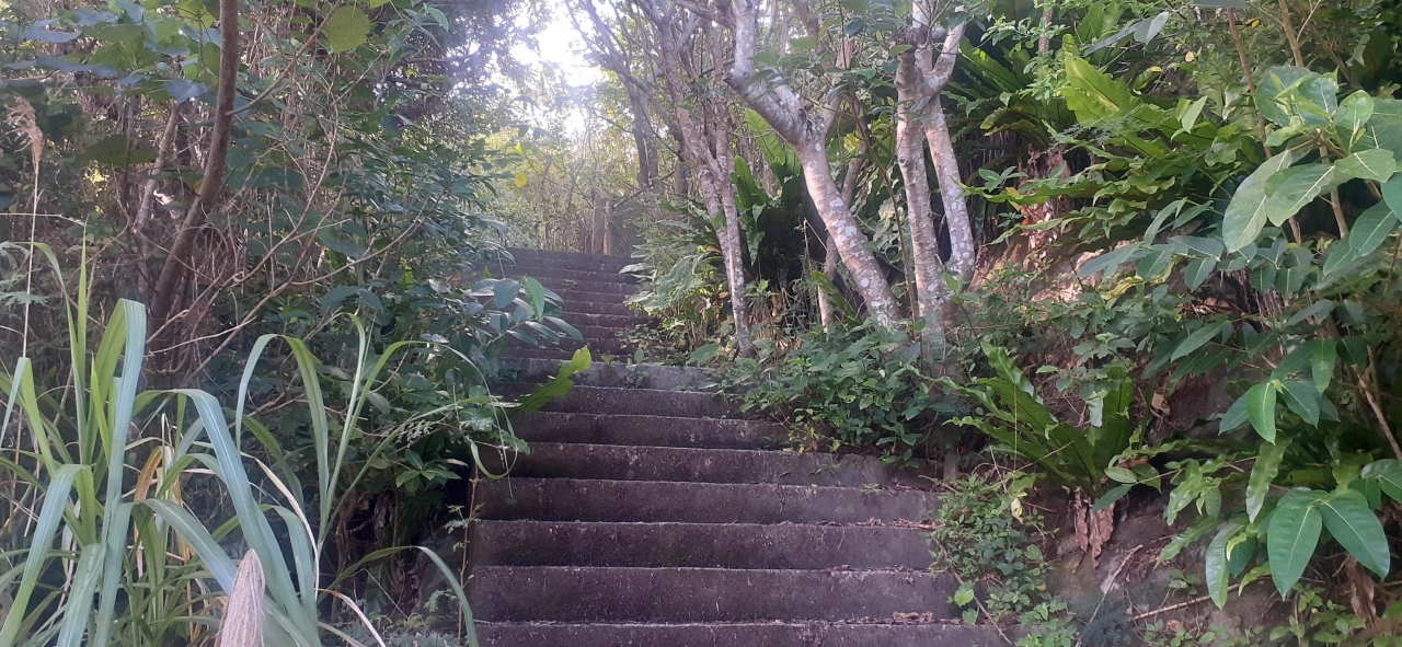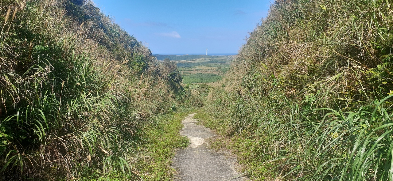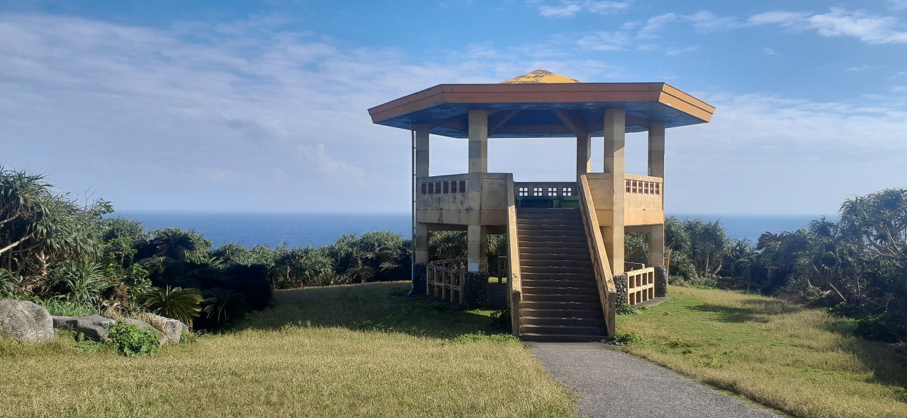 展望台や展望場所などはありません。雑草の中から祖納の町を見られます。