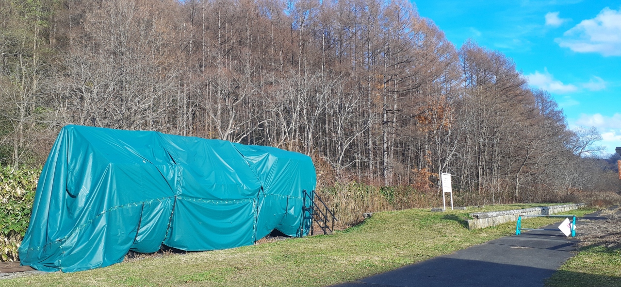 冬の備えて大理石の作品はシートがかぶせられて見られませんでした。
