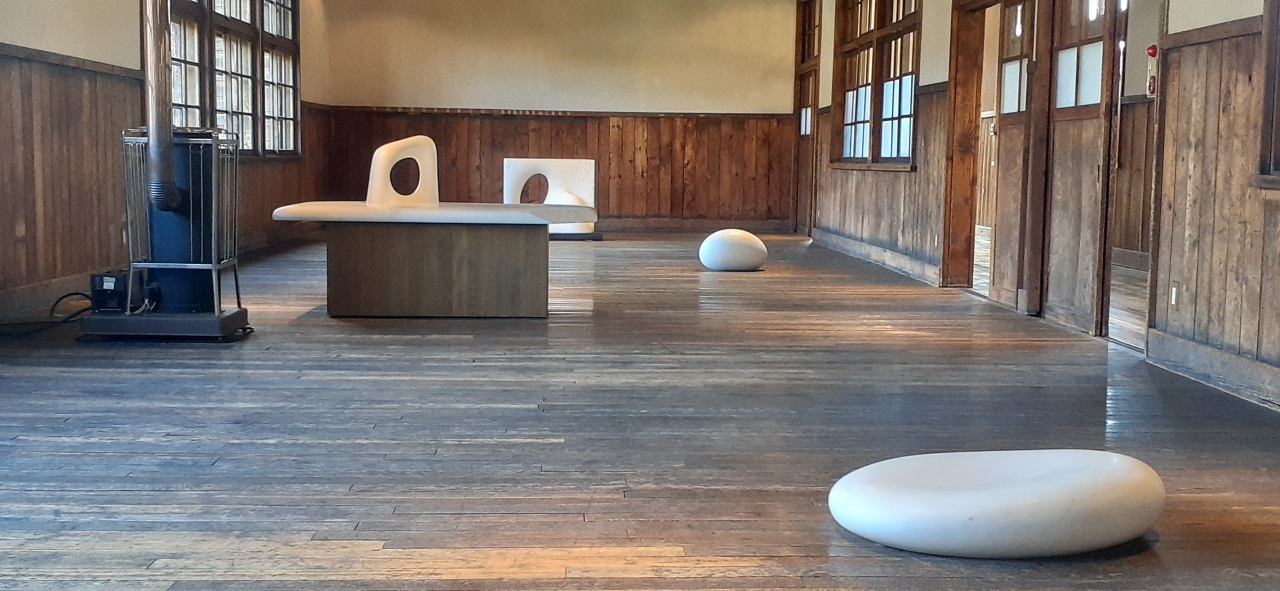 安田さんの作品が校舎内や屋外に展示されています。