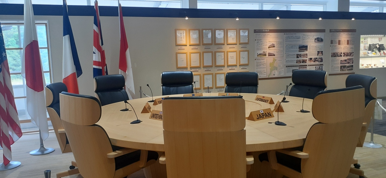 目玉はサミット首脳が会議で使った丸いテーブル。