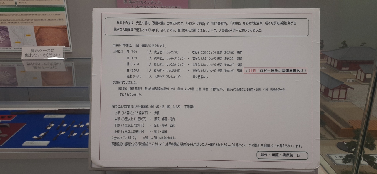 周辺の古墳についての説明もいいですが、一番良かったのは、天平時代の貴族、役人、庶民の食卓の模型でした。