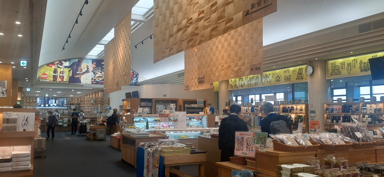 秋田空港の出発搭乗口のある2階フロアの半分ほどを占めている売店です。