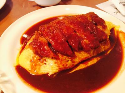 今回はオムライスの上に100gのカツが乗ってるランチ。