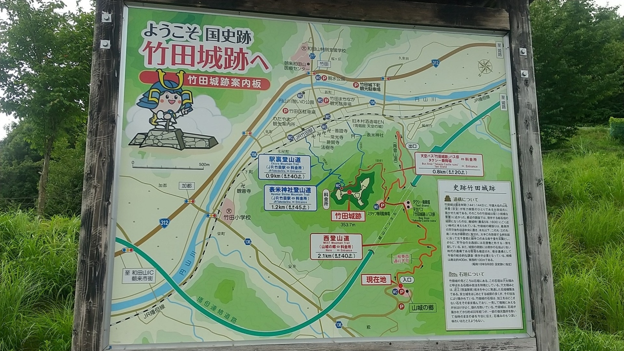 駐車場①←1km→駐車場②(中間)←1km→竹田城 って感じです。