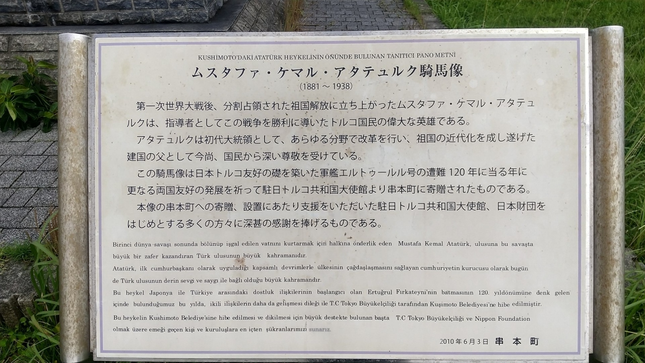 1980年に台風により座礁沈没したトルコのエルトゥールル号の船員を地元の漁師達が救った・・・ということから、日本とトルコの友好関係が築かれ、それを記念して建てられたものだそうです。