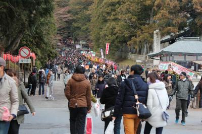 初めて行っての感想は、人がいっぱいいるなー。屋台がいっぱいあって楽しそうだなーと感じました。下調べをあまりしていなかったので、拝観料の高さに驚きましたがせっかく来たので拝観料を払って奥まで行きました。有名な三猿も見れて満足していたのですが、後から気付いた事としては拝観料で入れるところはいくつかあるみたいで、チケット複数あり、その切られていない半券が余ったまま帰ってきてしまいました。- 旅行時期