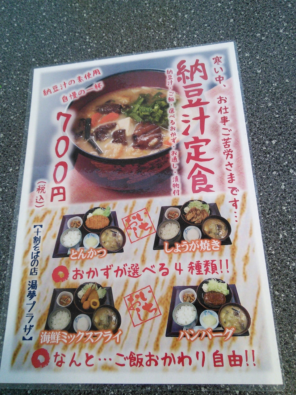 湯夢プラザへ行ったこの日は、夜に夢灯りがあるということで非常に混雑してました。名前を記入して30分以上たって呼ばれて、そこからさらに数十分待って料理が来ました。