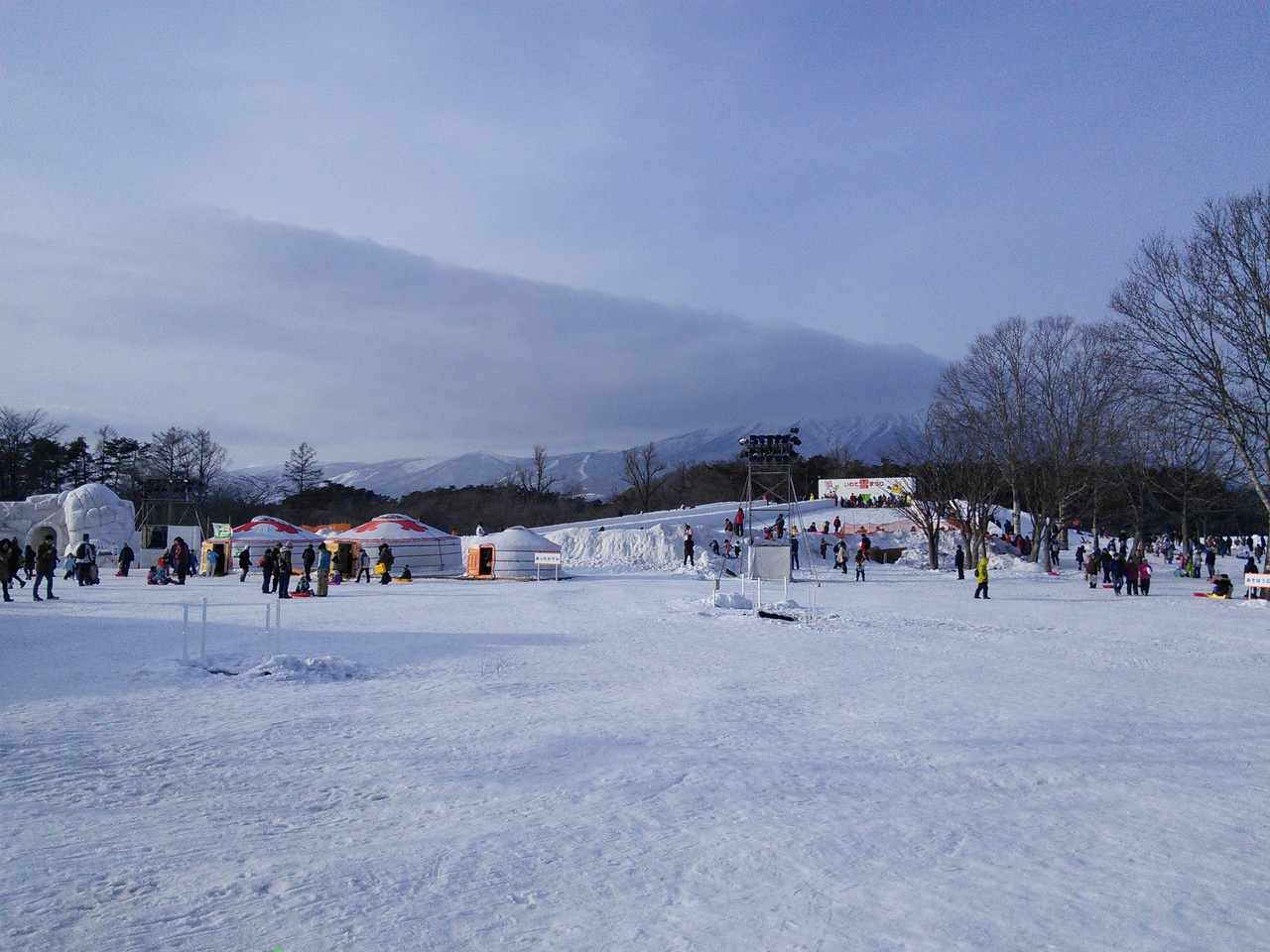 それでも、馬ゾリがあったり、スノーモービルがあったり、巨大な雪の滑り台があったりと子供達にとっては天国のようなところです。夜に行くといくら防寒していても寒いのですが、今年は昼間にいったからか、それともその日の気温が高かったからなのか、寒い思いをしなくてすみました。ちなみにこの日の雫石町15時〜16時の気温は、3.4度。20時には−5度。21時には-5.9度。昼と夜で約10度も違います。