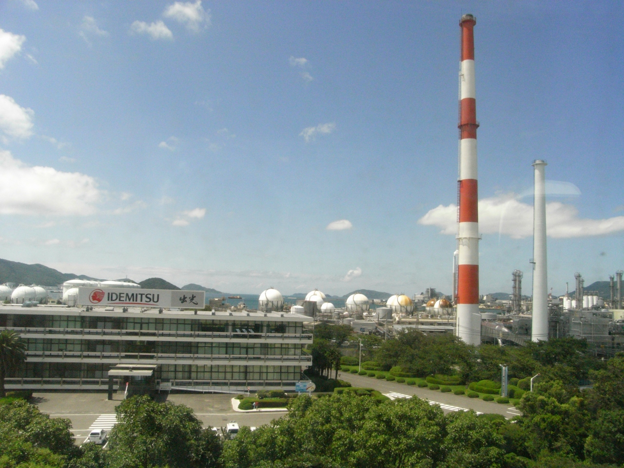 新幹線で徳山駅周辺を通過する時、石油コンビナートが見えます。配管が血管の様に繋る低層の建物・設備が広がる様は必見。照明に照らされた夕方・夜に通過すると、SFに出てくる乾いた未来都市の様で、幻想的。