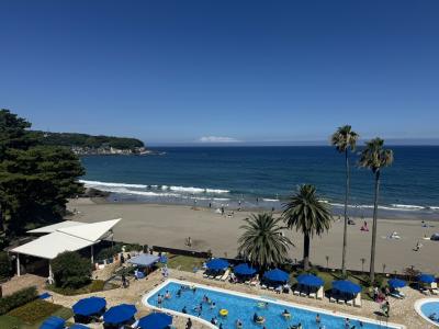 今井浜海岸駅から歩いて5分、ホテルの前には、プライベートビーチのように今井浜海岸が広がっています。ホテルからは、プールの横を通って海岸に抜けられるつくり。ホテルの部屋でのんびりしたり、プールやビーチで泳いだりと、海のリゾートを満喫できるホテルです。