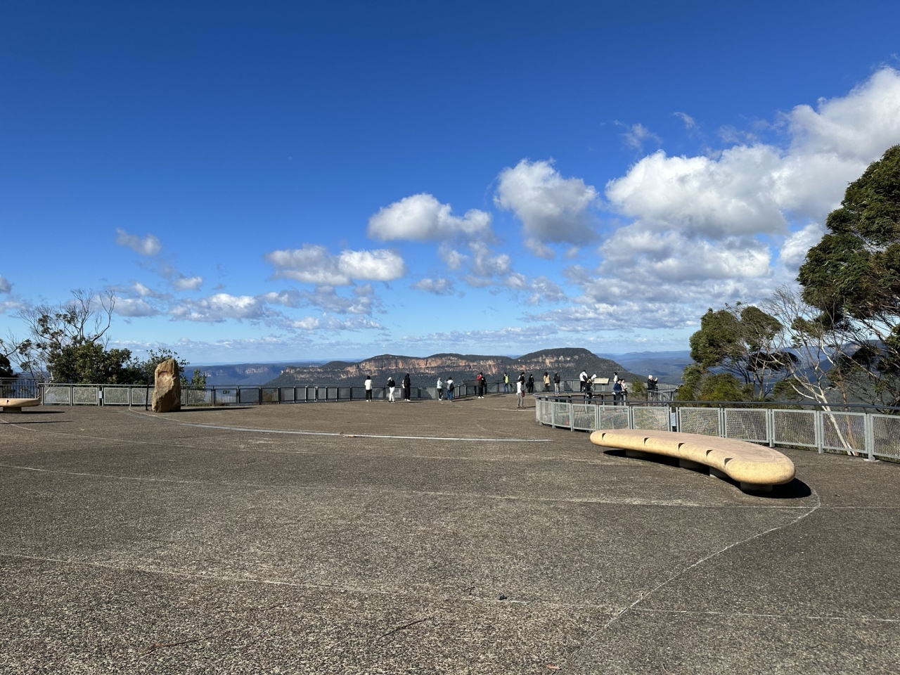 シドニーの中心街から西に100キロのところに、シドニー近郊での屈指観光名所、スリーシスターズがあります。このスリーシスターズを近くから見られる展望台があるのがエコーポイントです。崖に突き出すように、崖に沿って遊歩道のような展望台になっており、180度のパノラマを楽しむことができます。