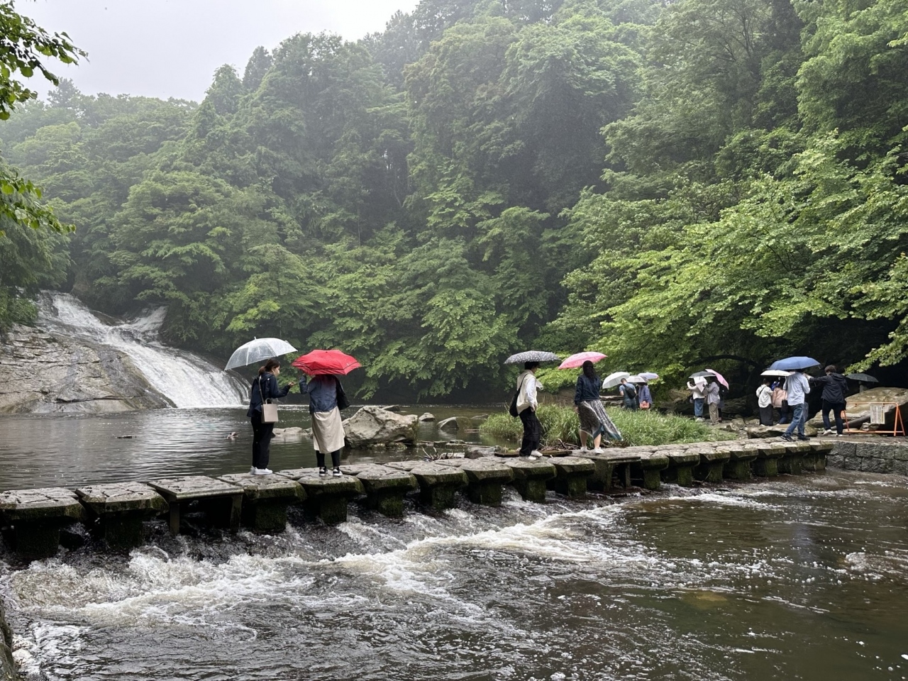 養老渓谷駅から粟又の滝まで行くバス通りのちょうど真ん中あたり、バス通りと国道465号線との交差点近くにあるドライブインです。おそば屋さんや、店頭で鮎を焼いているお店の他、養老渓谷や大多喜町のお土産品が売られています。