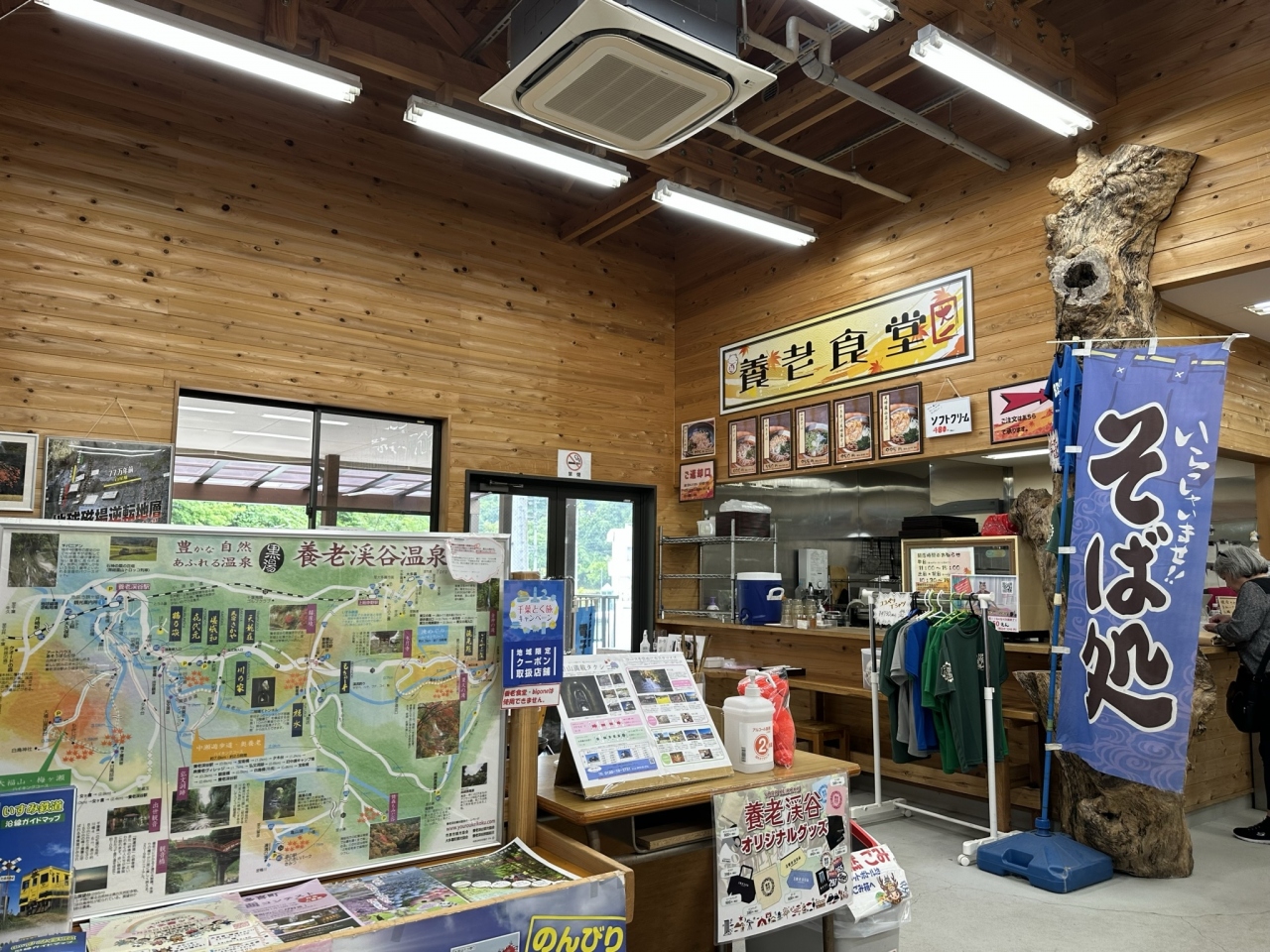 養老渓谷駅の改札を出ると、左手に「観光案内所」と書かれた青い大きな看板が目に入ります。ハイキングコースなどの観光情報が充実していますが、その他にも、電動レンタサイクルや、荷物預かり(1日200円)なども、この案内所でやっています。