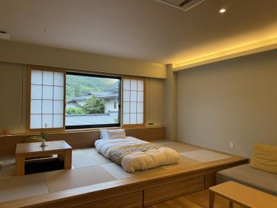 2024年にリニューアルされた西館に宿泊。全室和モダンタイプで、伝統的な老舗旅館でありながら、すごしやすくデザインされた客室は、居心地抜群でした。
