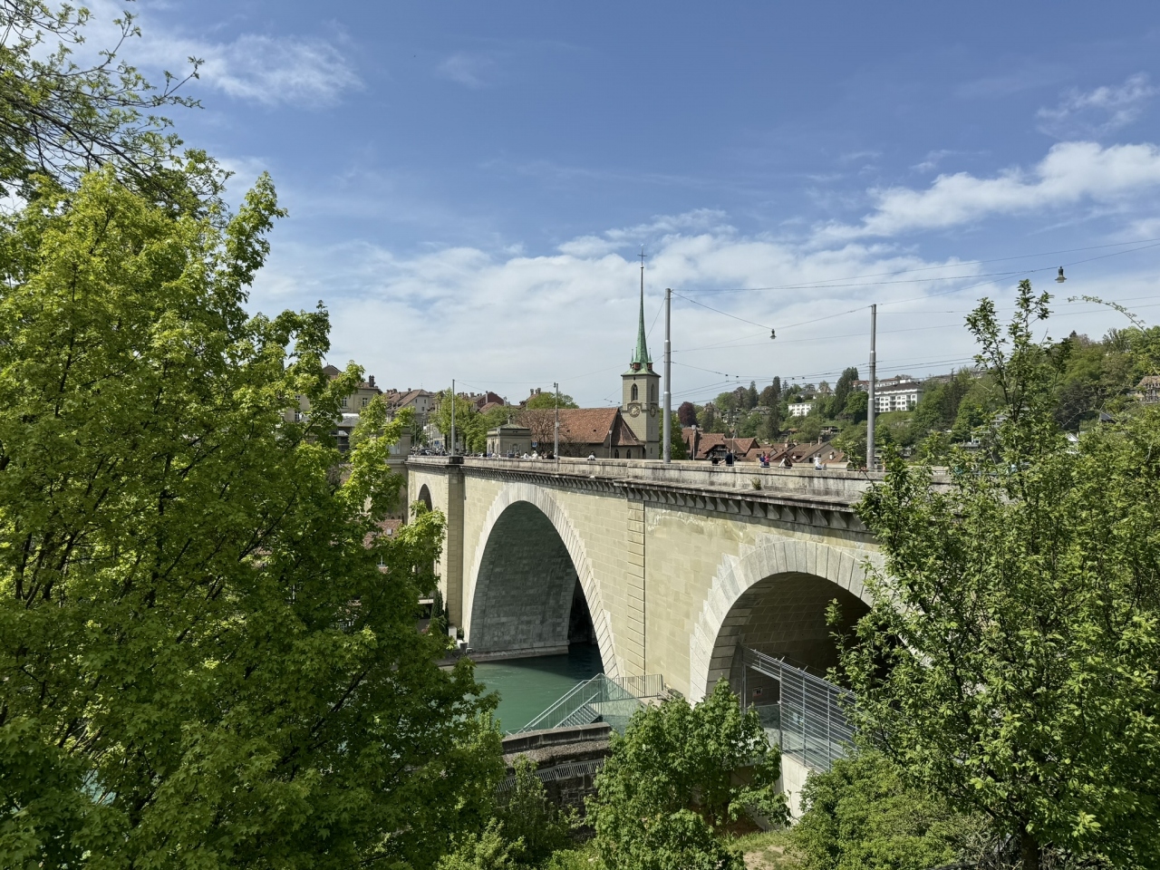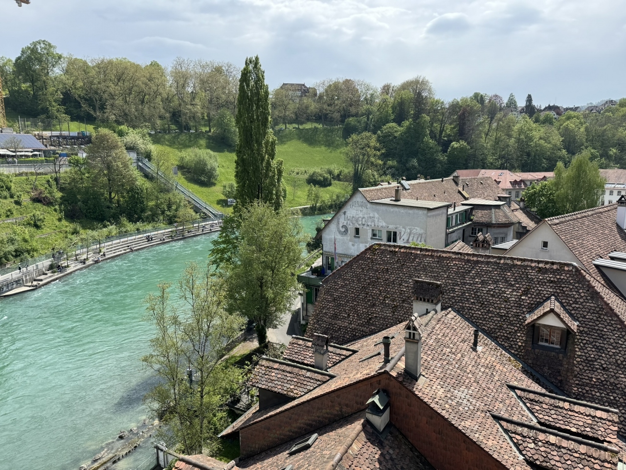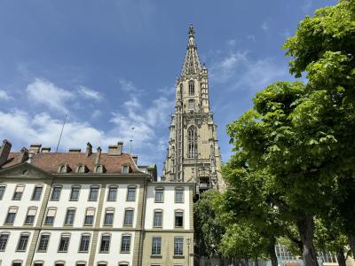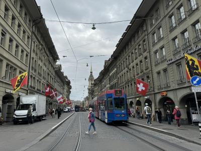 ベルン旧市街のメインストリート上、ベルン中央駅から歩いて5分ほどのところに牢獄塔があり、塔の下はトラムやヒトが通れるようになっています。この牢獄塔の東側(歩いて2-3分のところ)には時計塔がありますが、この2つの塔は似たような外観です。当初は時計塔がベルンの街の西門でしたが、その後街が拡張して、新たな西門として建てられたのがこの牢獄塔。どちらも、街の西門として建てられました。