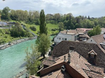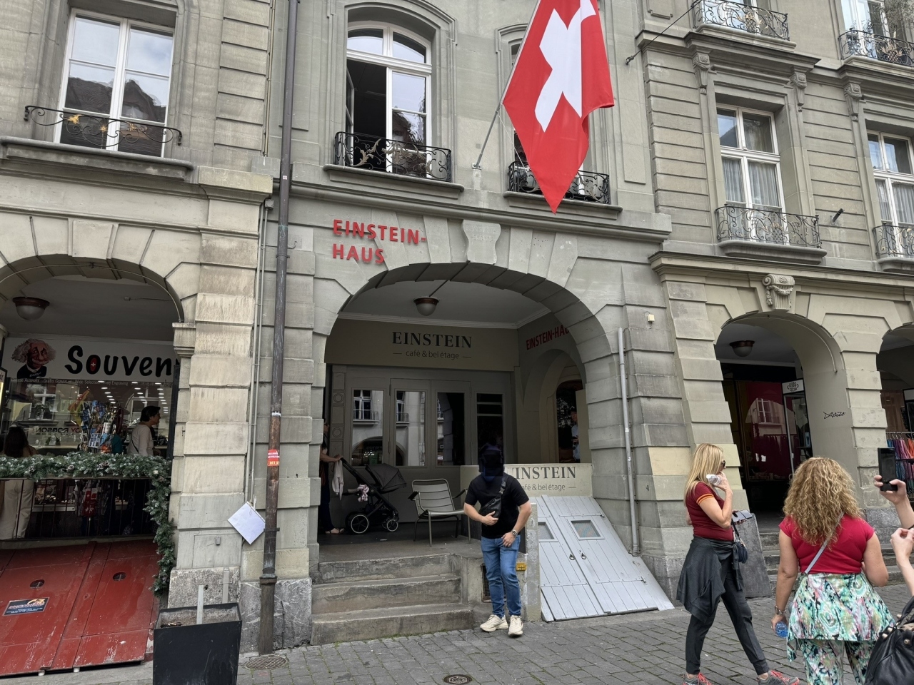 ベルン旧市街のメインストリート(クラム通り)、ベルン大聖堂のすぐ近くにアインシュタインが妻とともに暮らしたアパートメントが残っています。当時暮らしていたアパートメントの2階の部屋は、そのまま記念館として公開されています。通りに面したアパートメントの入口には、アインシュタインの家と書かれており、記念写真のスポットになっています。