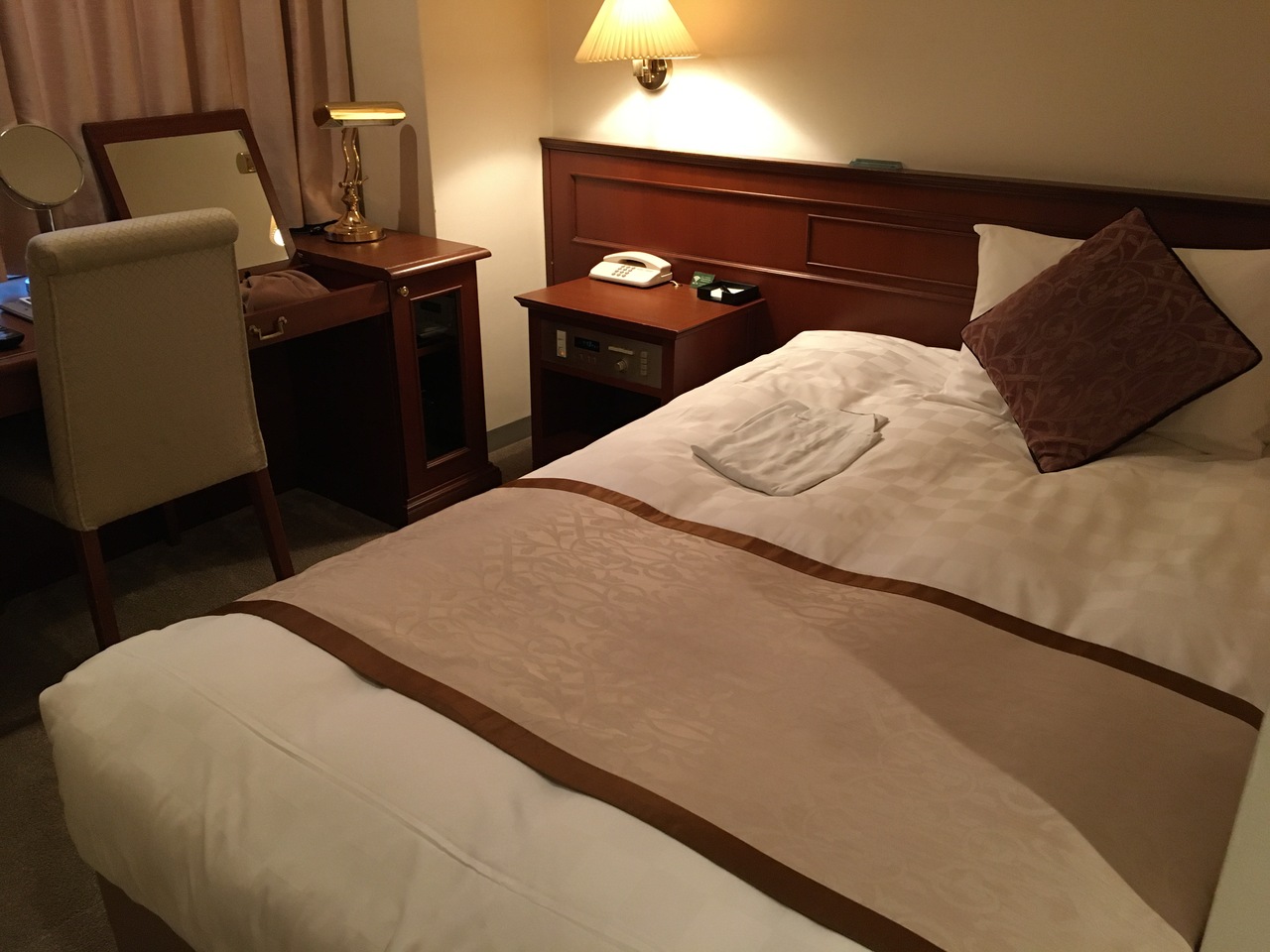 電源がベッドサイドにあると便利なんだけど、デスクにあるだけでした。