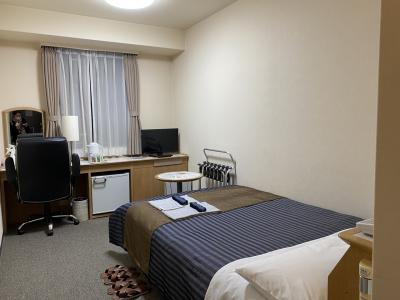 シングルの部屋はコンパクトでしたが、窓側にスーツケースを広げられるようなスペースがありました。