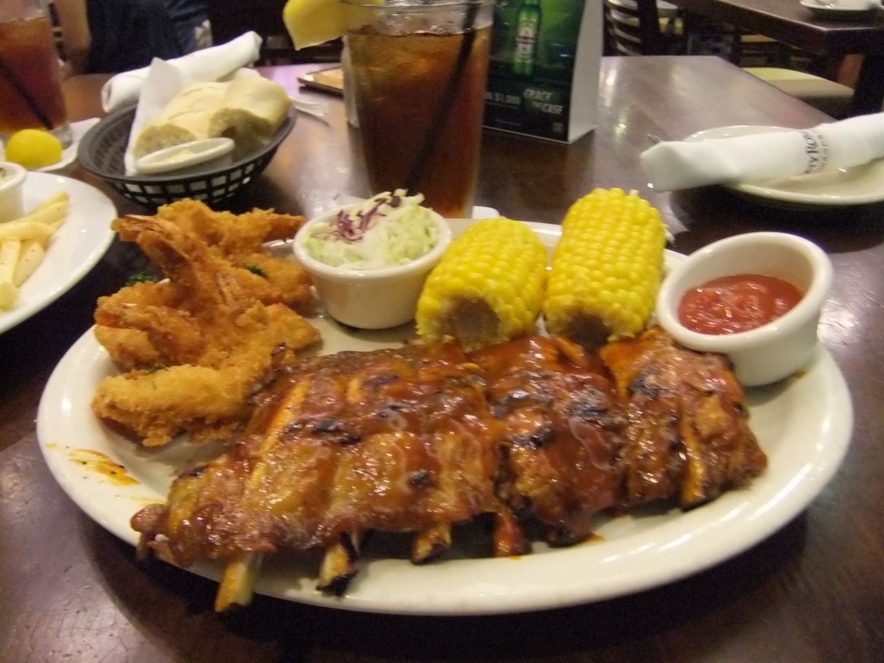 メニューはどれも食べたくて迷いましたが、ベイビーバックリブとシュリンプのセットにしました。