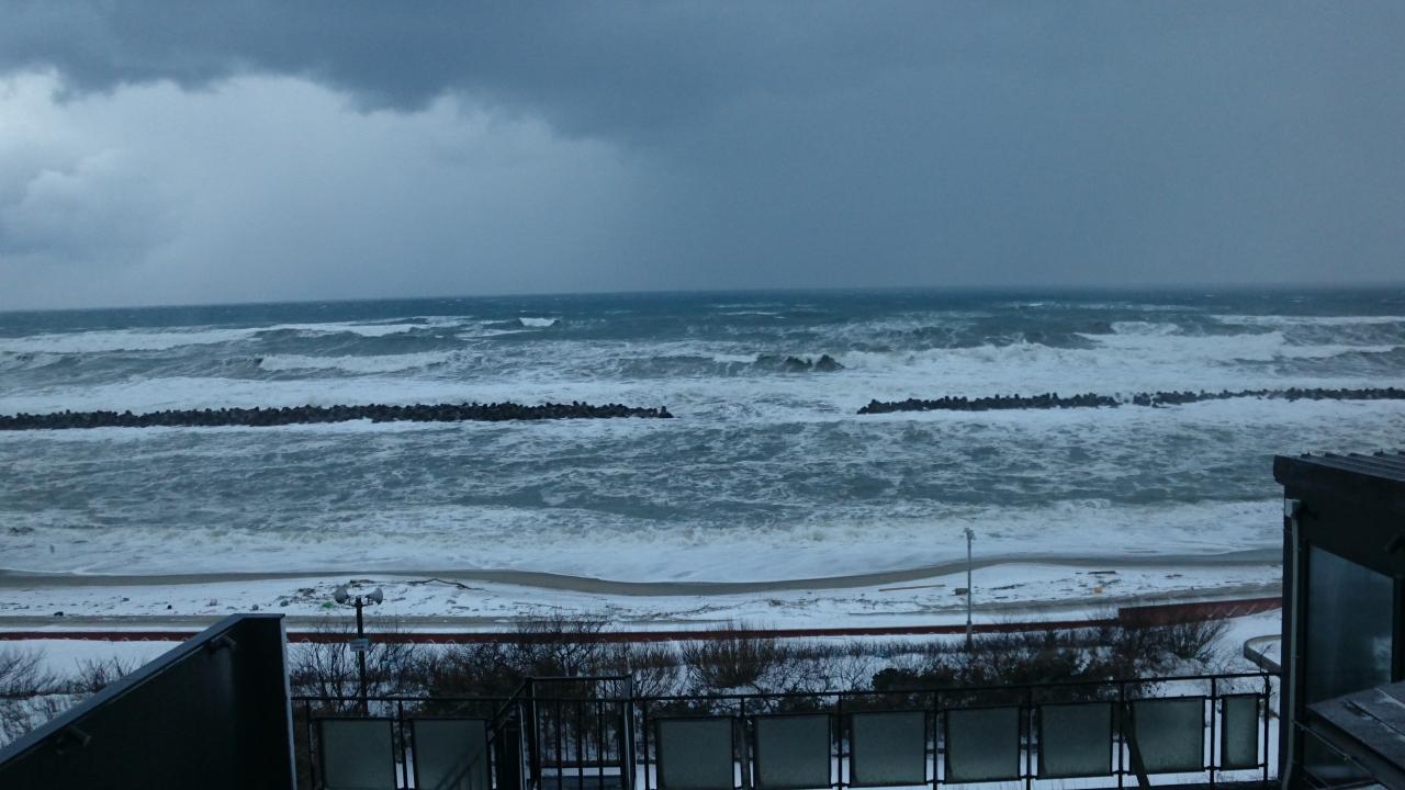 しかし部屋の温泉から荒れる日本海を眺められる(本来は夕陽が望ましいのでしょうが…)